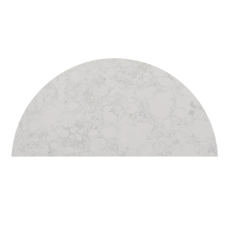 Entertain in style when your place this faux marble top sofa table in your living room or open concept living space. A spacious tabletop holds a lamp and fresh flowers, while the open wood shelf displays family photos and dcor items. The natural finished base crafts a classic look, complementing most dcor. Add sophisticated simplicity to your entryway with this two-tone console table.