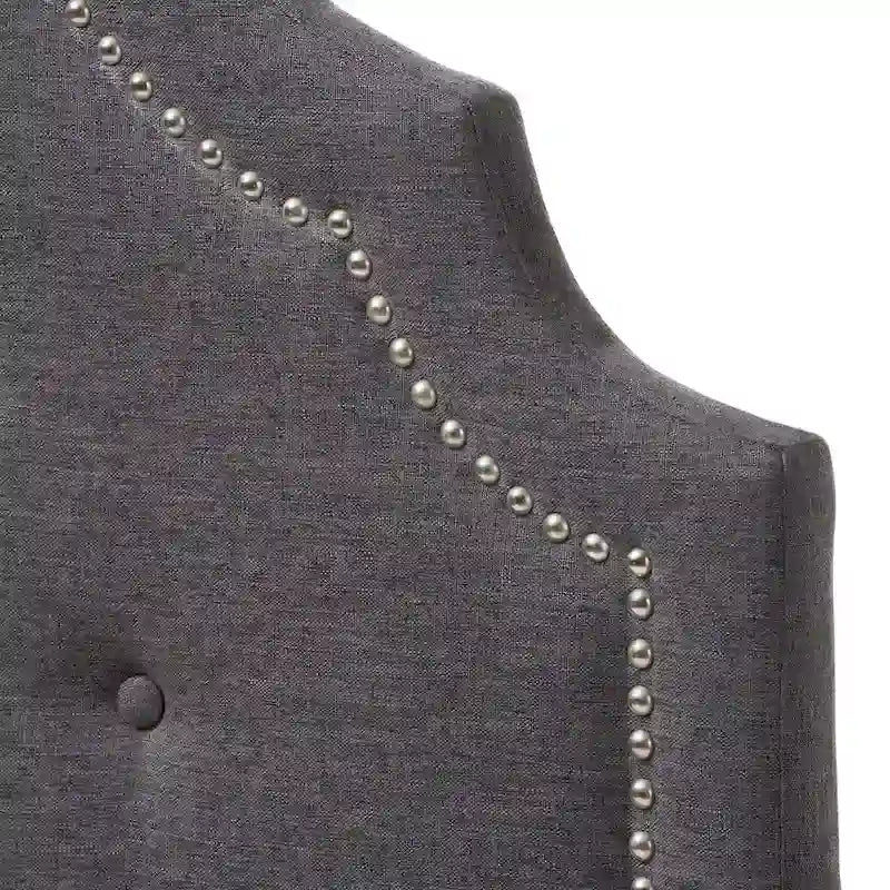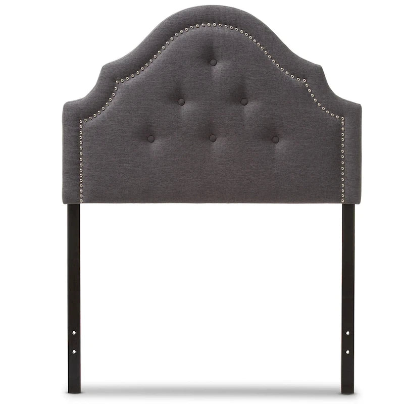 Modernize the style of your bedroom with this plush Founders headboard from Taylor & Olive. The cut-out arched headboard is made from solid rubberwood and plywood with polyester fabric upholstery available in dark grey or greyish beige. The adjustable headboard features button-tufting and silver nail head trim, and comes in twin size, making this beautiful piece the perfect finishing touch to your room.