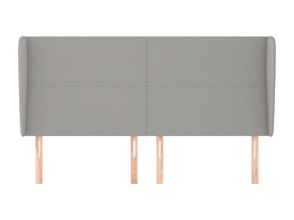 Headboard with wings, light grey, 203x23x118/128 cm, fabric