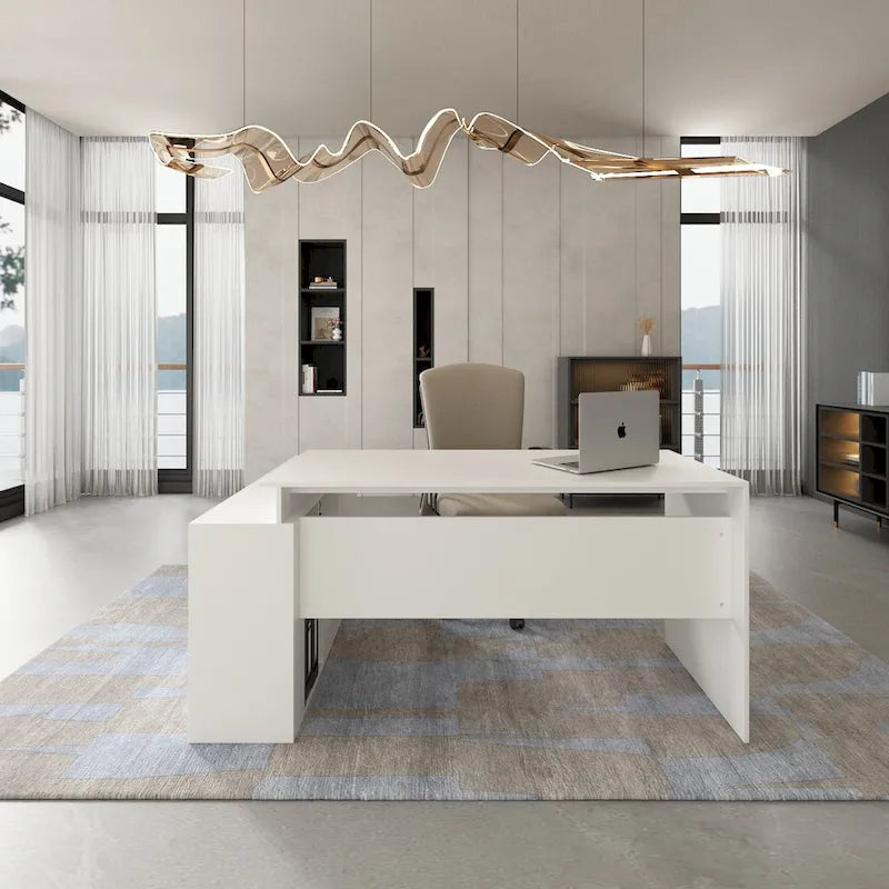 Upgrade your home office with the Timechee L-shaped computer desk. This functional desk provides ample open space for your computers, office supplies, and decorative plants. With additional drawers and closed cabinets, this desk ensures security for your important files or privacy belongings. The high-quality MDF wood construction ensures stability and durability, making it resistant against water and scratches. The flexible design allows you to adjust the combination of desktop and cabinet to fit the space of your working place. Plus, the extra countertop of the file cabinet provides more workstation, keeping everything within reach. With easy assembly and simple maintenance, this desk is a perfect addition to any home or office.