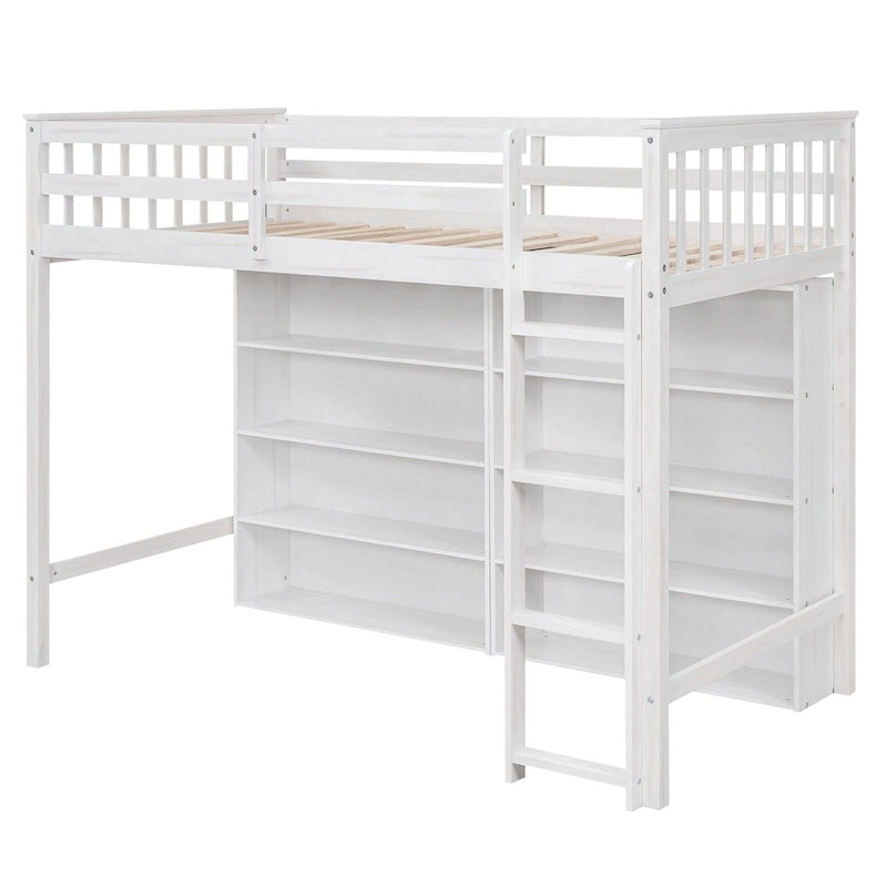 Twin Size Loft Bed with 8 Open Storage Shelves and Built-in Ladder, Gary