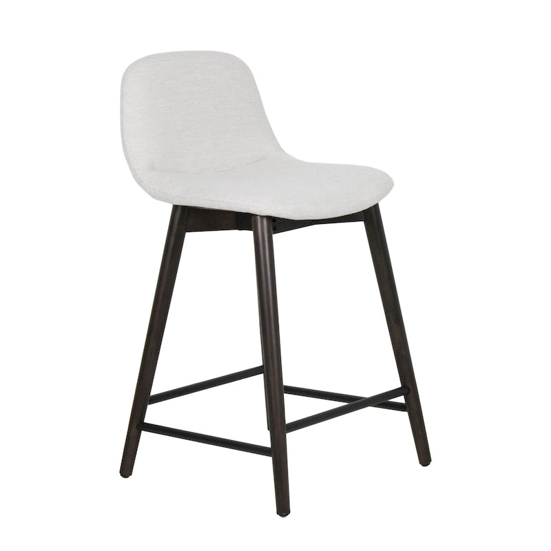 Enhance your space with this East at Main upholstered counter stool, a modern and contemporary addition to your home's decor. This counter stool features a low-back, upholstered bucket seat in polypropylene fabric, offering both comfort and style. Crafted with a solid rubber wood frame and legs, complete with a footrest, this stool is available in two versatile neutral shades of grey and light beige.