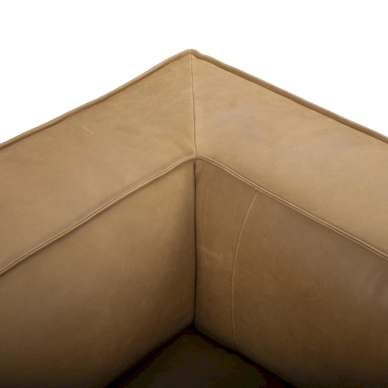 Integrating sleek design with durable construction that is not only stylish but comfortable as well, this sofa is upholstered in a warm caramel brown leather with a low profile that exudes a minimalist quality with a rustic modern aura that is perfect for your home or office.
