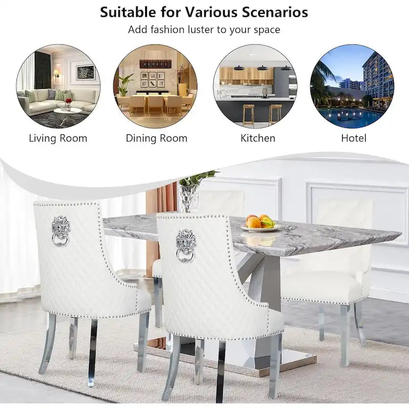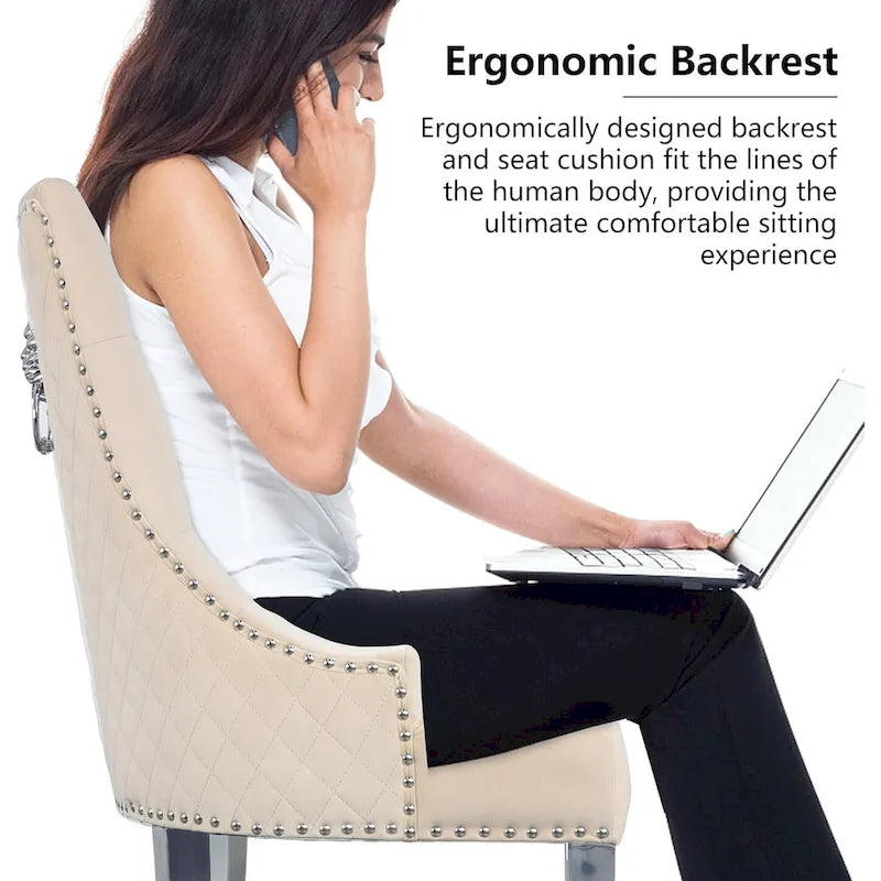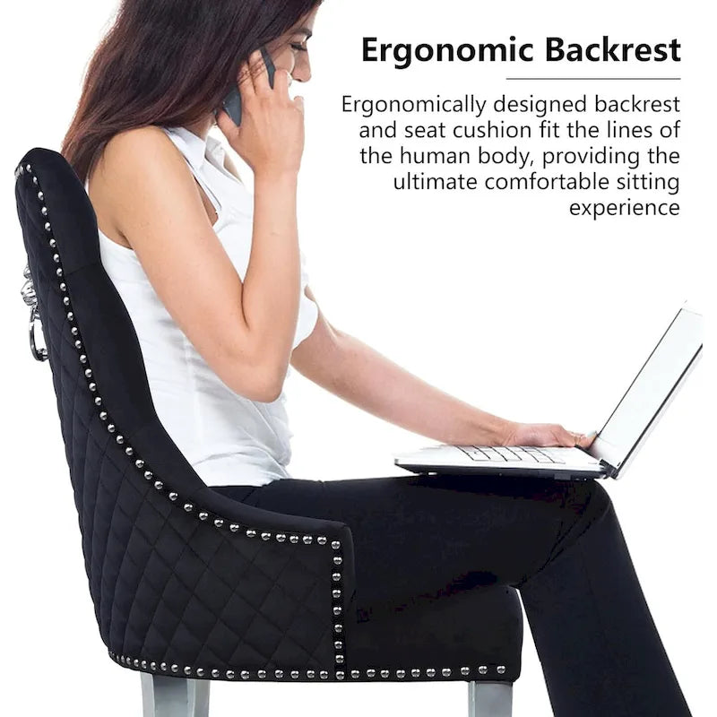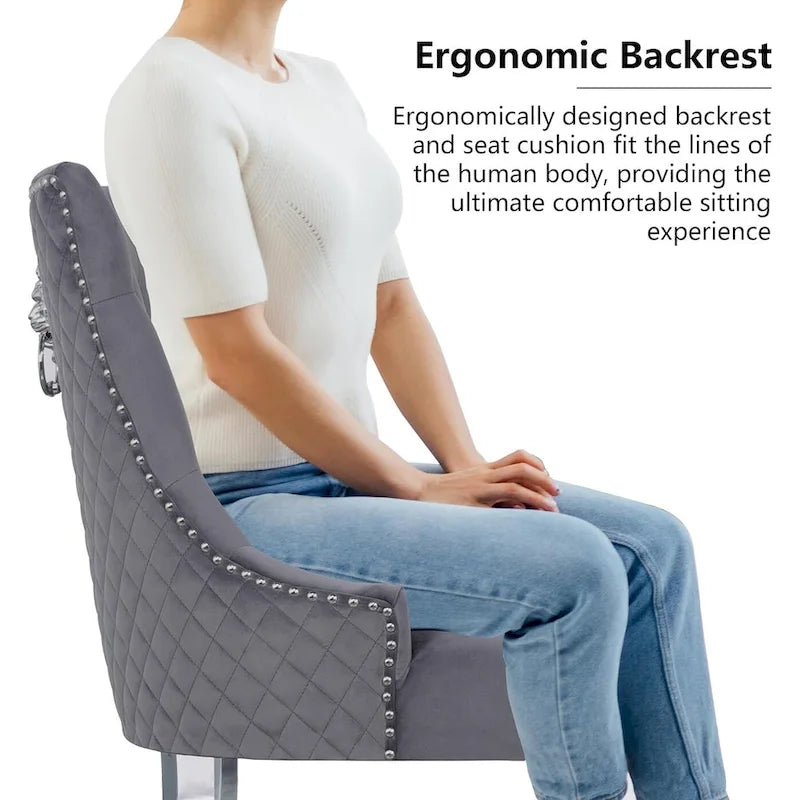 Velvet Dining Chairs Set of 2, Upholstered Tufted Nailhead Dining Room Chairs with Stainless Steel Legs & Lion Head Pull Ring