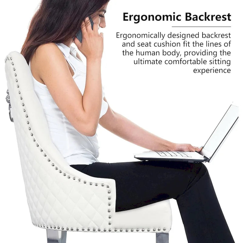 - Ergonomic Design: The kitchen chairs boast a high back with classic tufted buttons that contour to your body for excellent support. Decorative rivets around the seat and backrest add a charming touch, seamlessly integrating with any home decor.