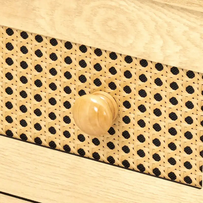 - Unique rattan design with wooden handle