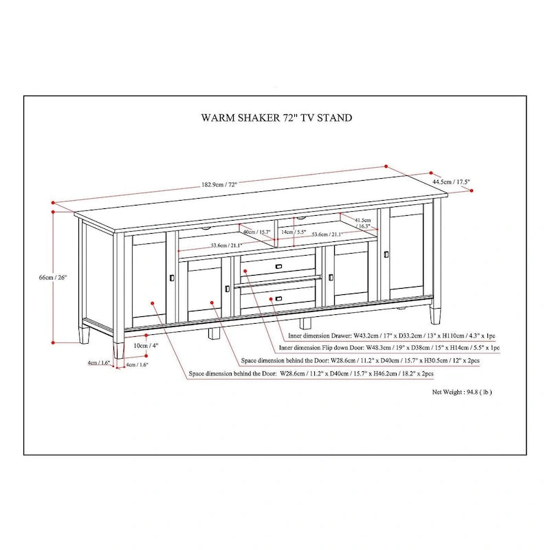 - DIMENSIONS: 17.5 d x 72 w x 26 h