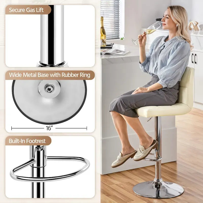 Upgrade your home bar or kitchen island with the Yaheetech 2pcs Adjustable Modern Faux Leather Swivel Bar Chairs. These stylish chairs seamlessly blend with any dcor and are made of premium materials including PU, foam, and iron for long-term use. With a weight capacity of 330lb each, these chairs are constructed with upgraded heavy-duty iron, polyurethane, sponge, nonwovens, and plywood. The adjustable height and 360 swivel design enhance the convenience and practicality of the chairs.
