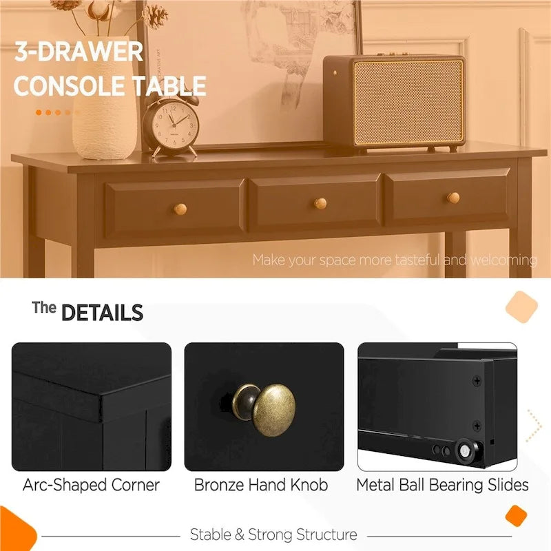 Yaheetech 3-Drawer Console Table with Storage Shelf